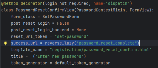 같은 에러가 발생합니다. PasswordResetConfirmView 정의로 이동해 봅시다.