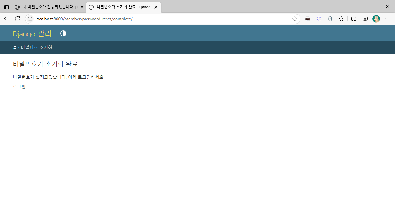 다시한번 비밀번호 초기화 버튼을 클릭해 봅시다.