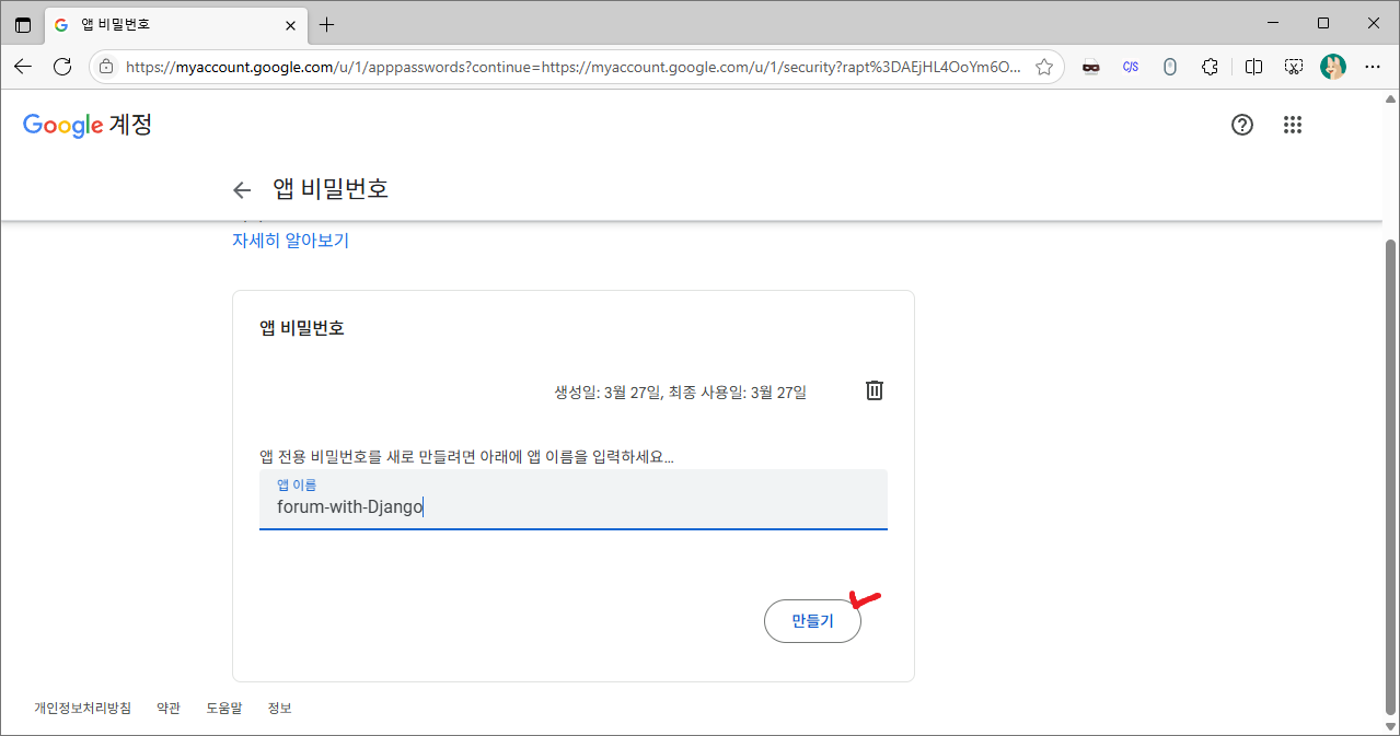 EMAIL_HOST_PASSWORD = '발급받은 비밀번호'