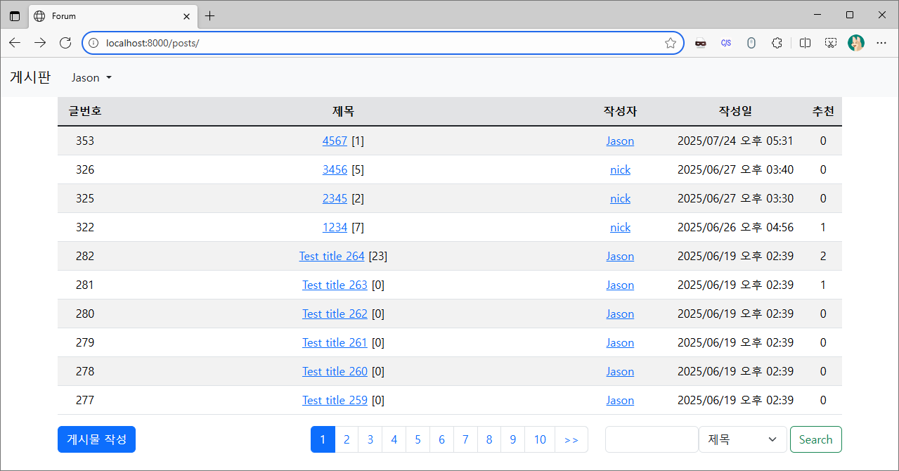 post_list에서 사용했던 테이블을 재사용 해 봅시다.