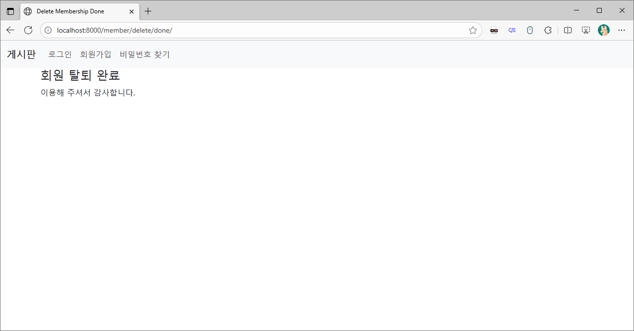 # 탈퇴 후 사용자에게 확인 메세지를 보여주기 위해 /done/ 엔드포인트를 작성하였습니다.